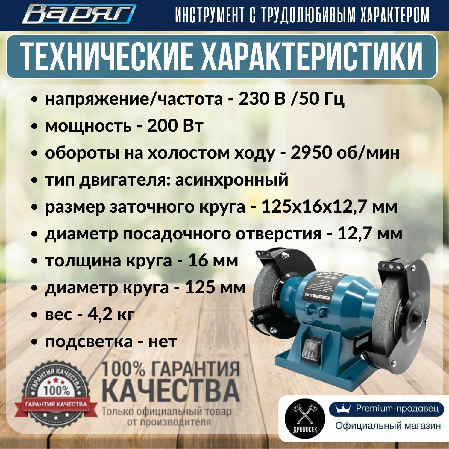 Точильный станок Варяг МТШ-125/200 электрический (200Вт, 125мм), заточной станок, электроточило, подарок мужчине интересное:
