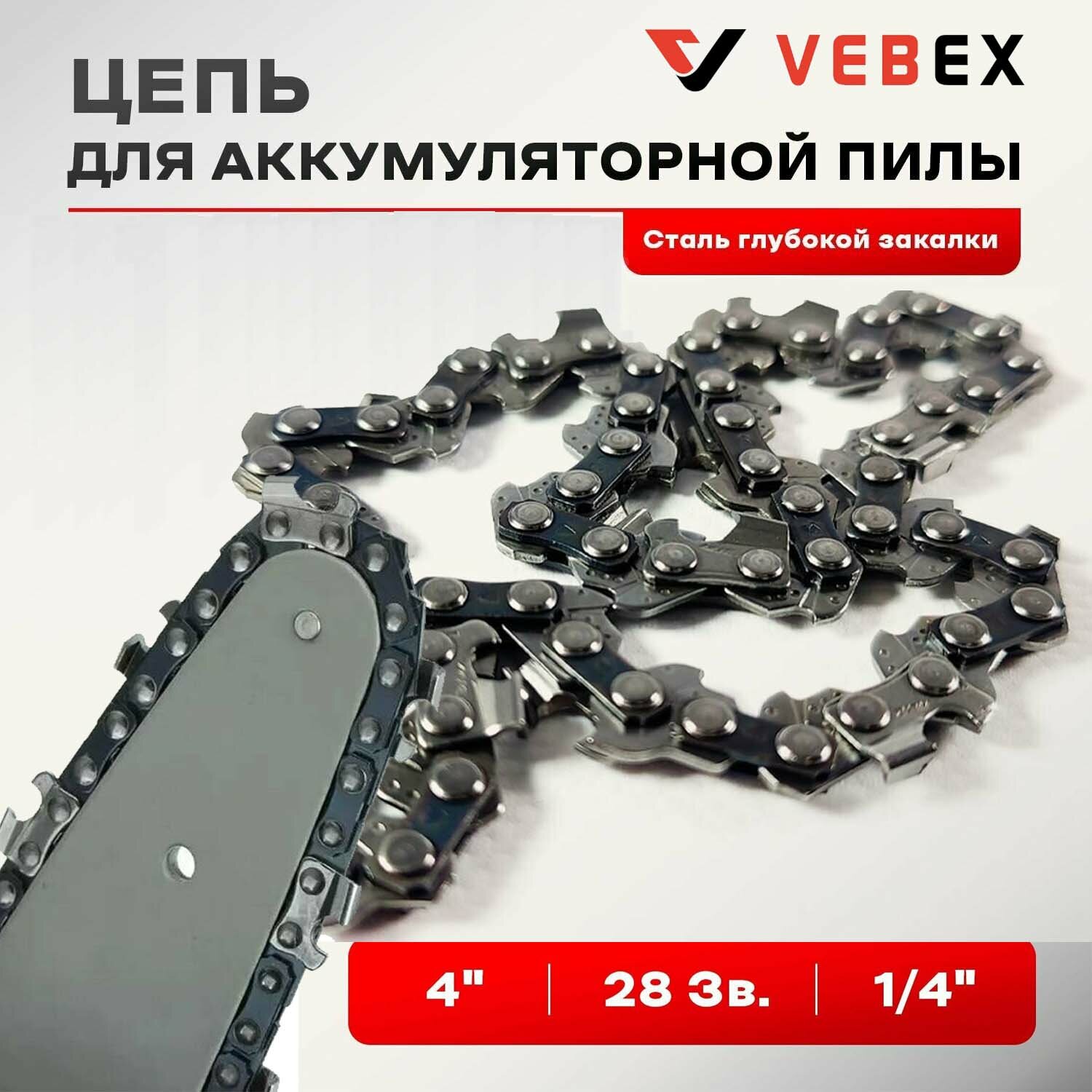 Купить Запасная цепь мини шина 4" 28 звеньев 1/4 043. Цепи пильные на аккумуляторный кусторез для мини пилы