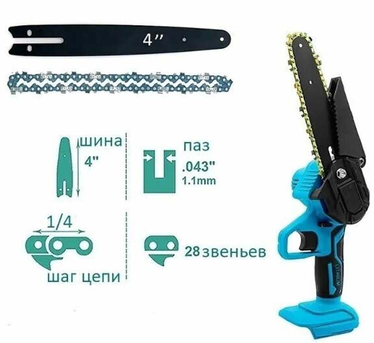 Запасная цепь мини шина 4" 28 звеньев 1/4 043. Цепи пильные на аккумуляторный кусторез для мини пилы интересное: