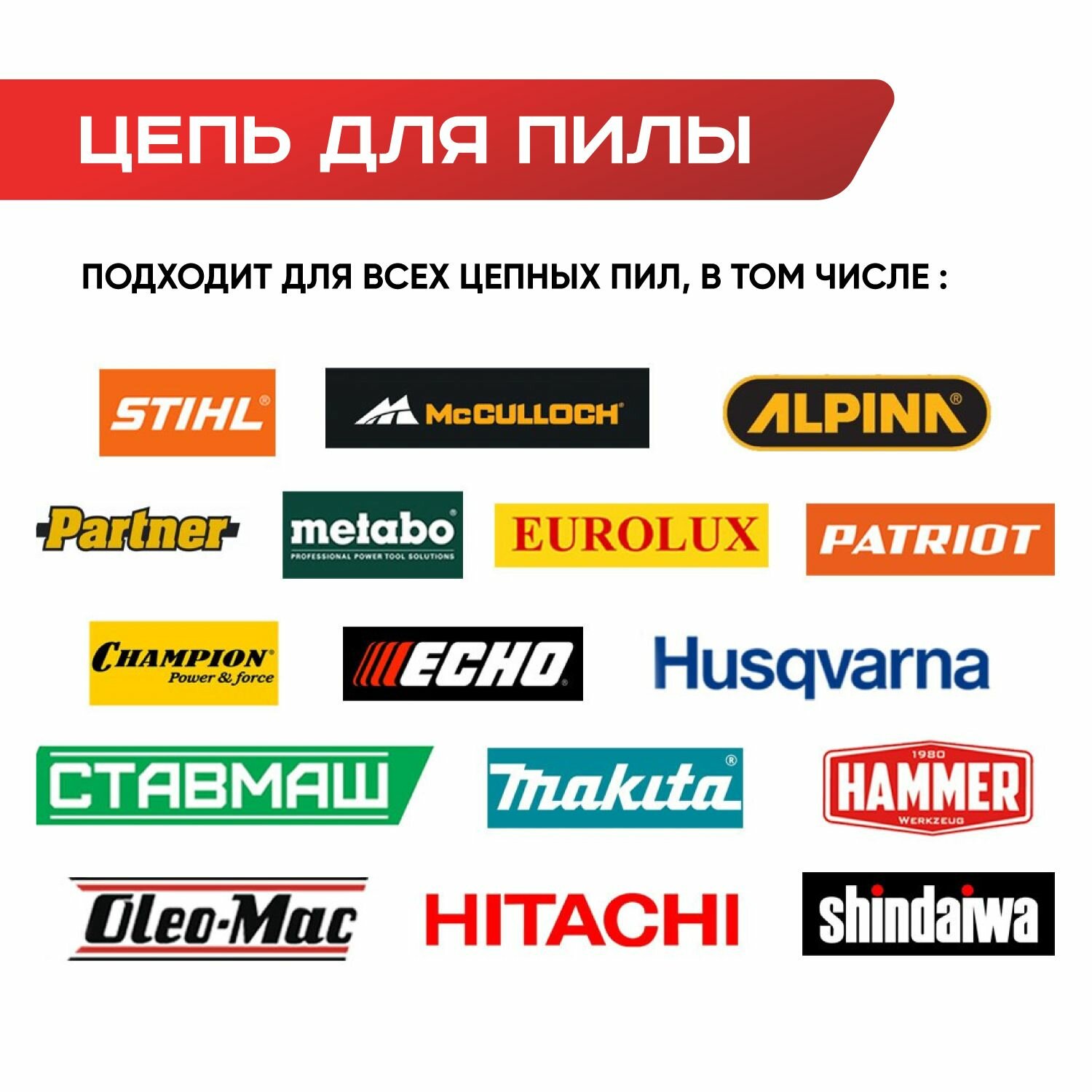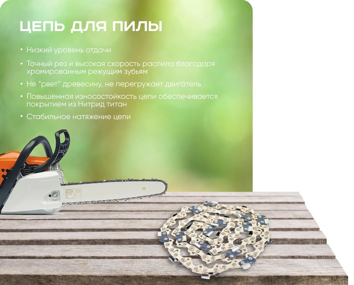 Цепь для бензопил / цепь для электропил / цепь пильная HITO 20", паз 1.3 мм, шаг 3/8, 76 звеньев, круглый нож интересное:
