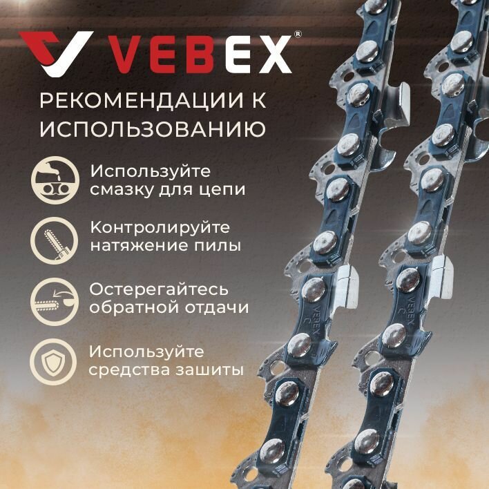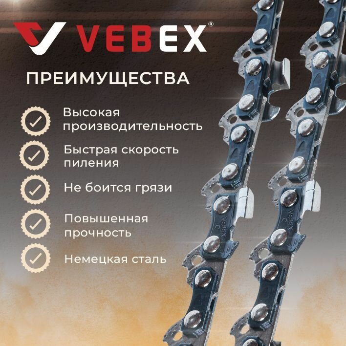 Цепь пильная / цепь для бензопилы 56 звеньев, паз 1.1 мм, шаг 3/8, шина 16" (40 см) VEBEX интересное: