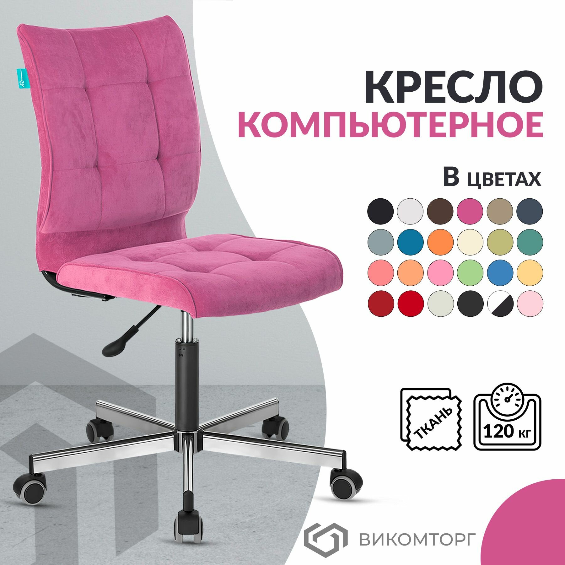 Офисное, компьютерное кресло CH-330M на колесиках, без подлокотников, металлическая крестовина, 44х65.5х85.5/99 см, Светло-розовый, экокожа