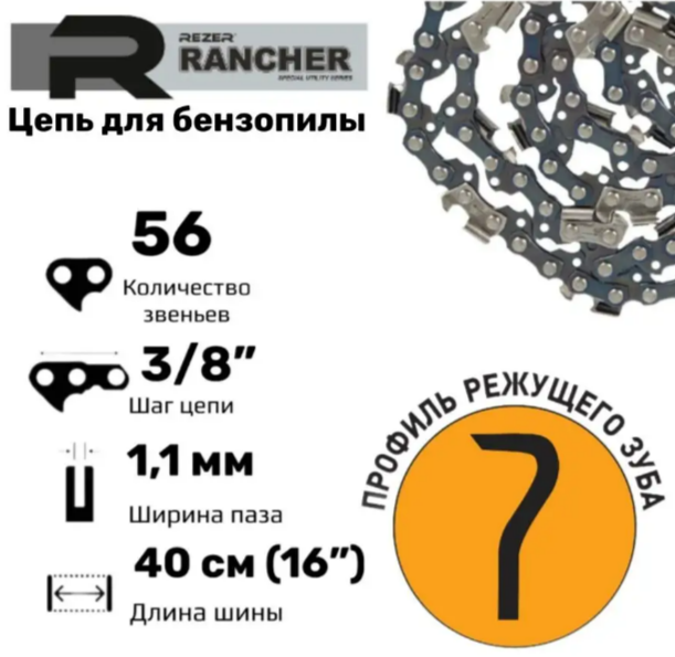 Цепь пильная Rezer Rancher 57 звеньев, шаг 3/8 дюйма, паз 1.1 мм