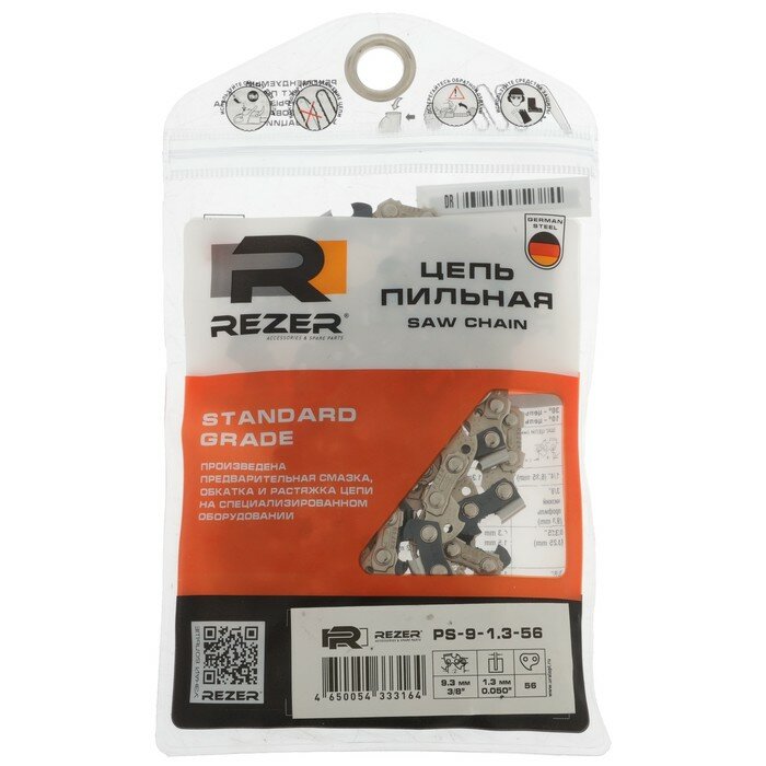 Цепь для бензопилы Rezer PS-9-1.3-62, 18", шаг 3/8", паз 1.3 мм, 62 звена, Partner/Poulan Rezer 4242