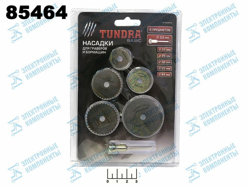 Набор кругов отрезных для граверов и бормашин тундра, 5 насадок и адаптер