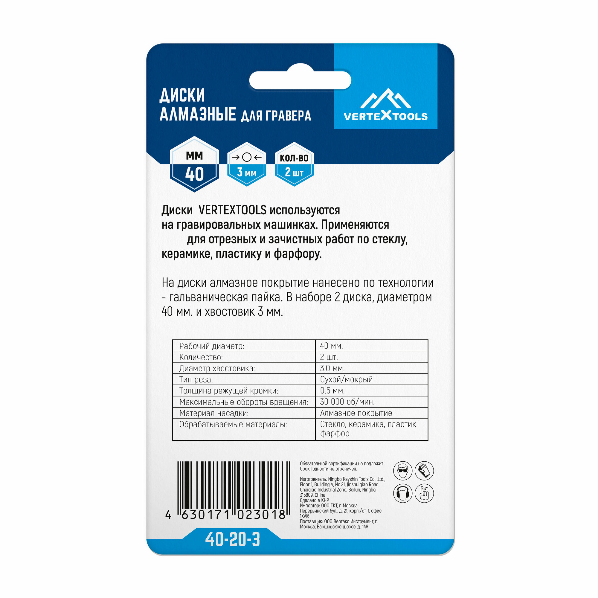 Купить Круги (диски) алмазные для гравера 40 мм. 2 шт. VertexTools