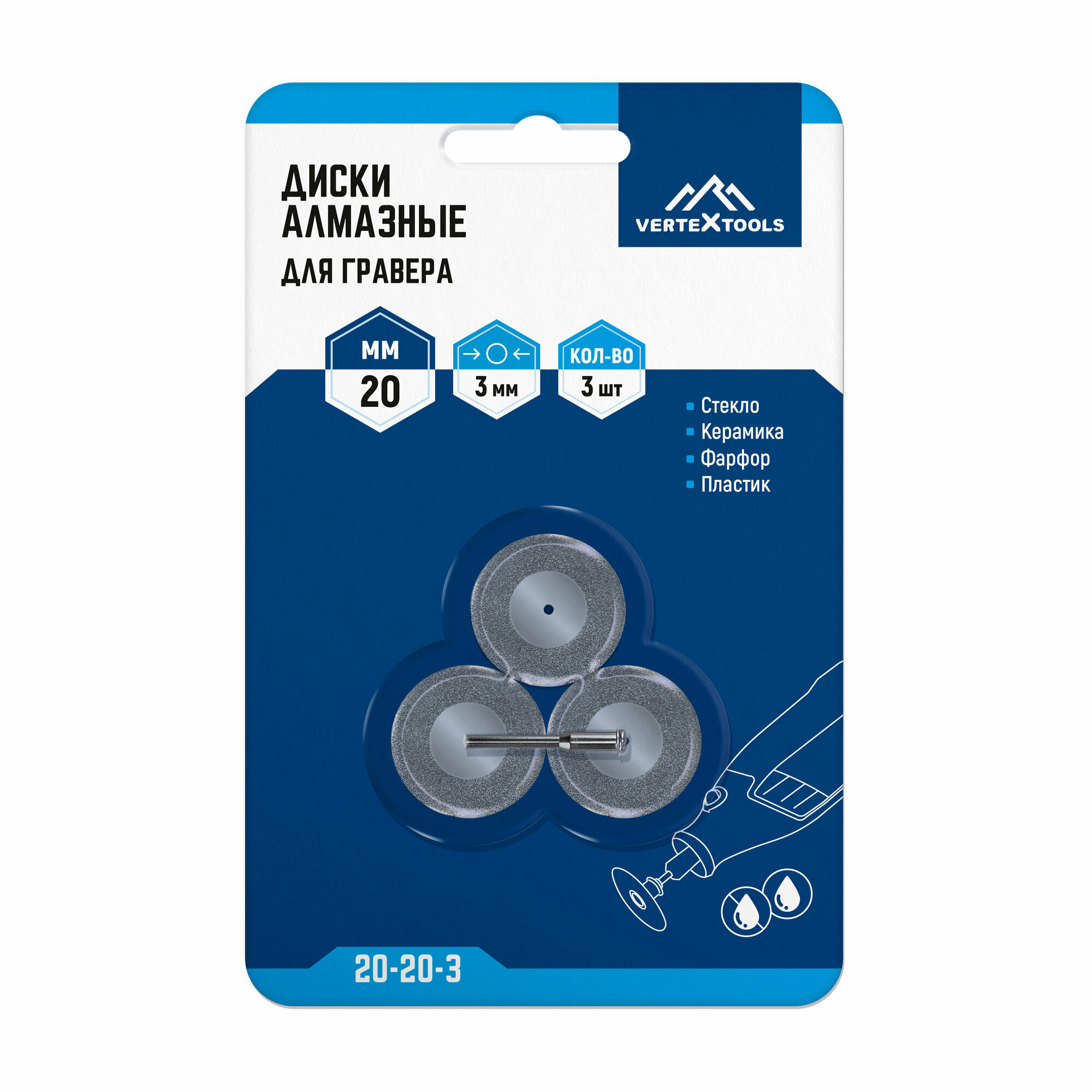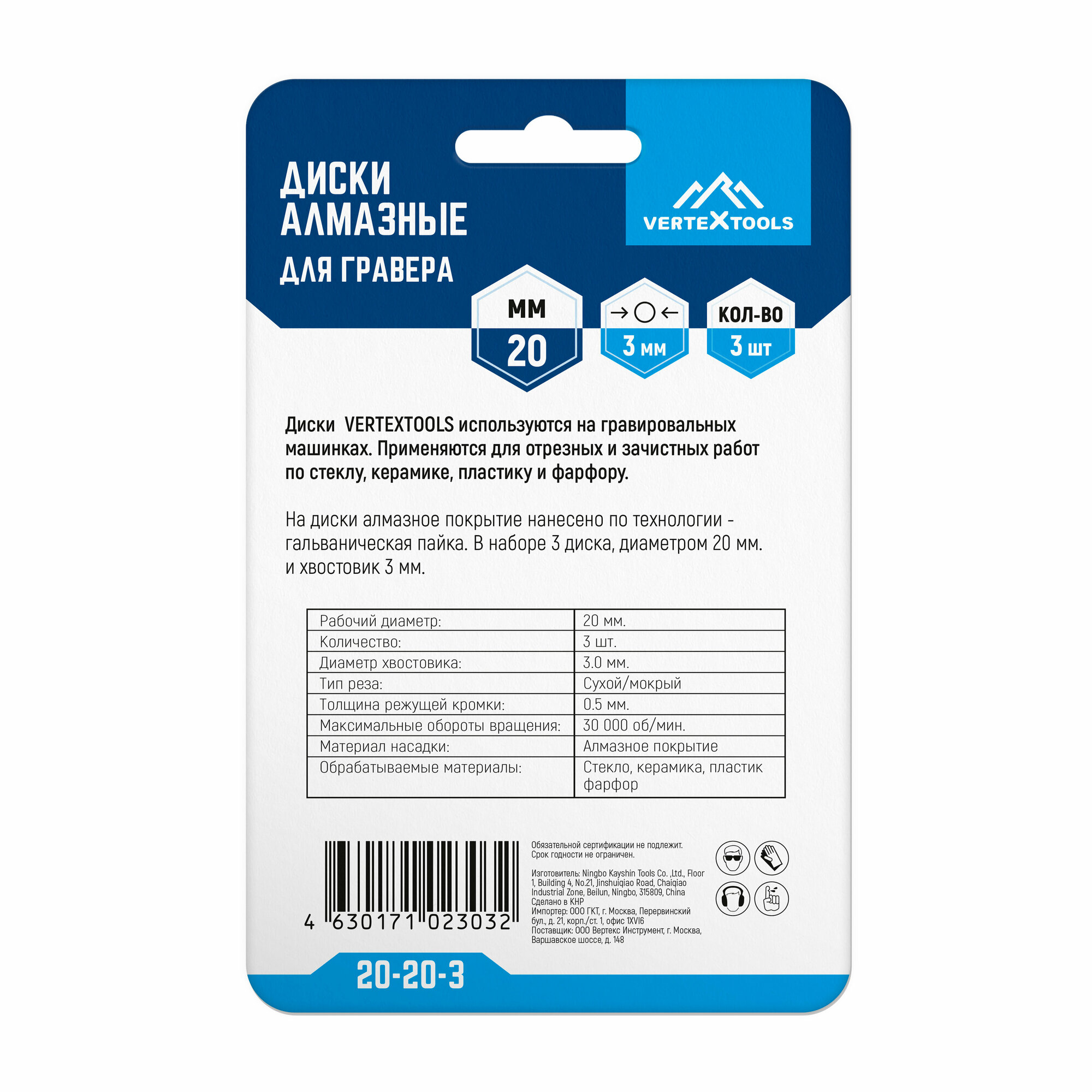 Купить Круги (диски) алмазные для гравера 20 мм. 3 шт. VertexTools