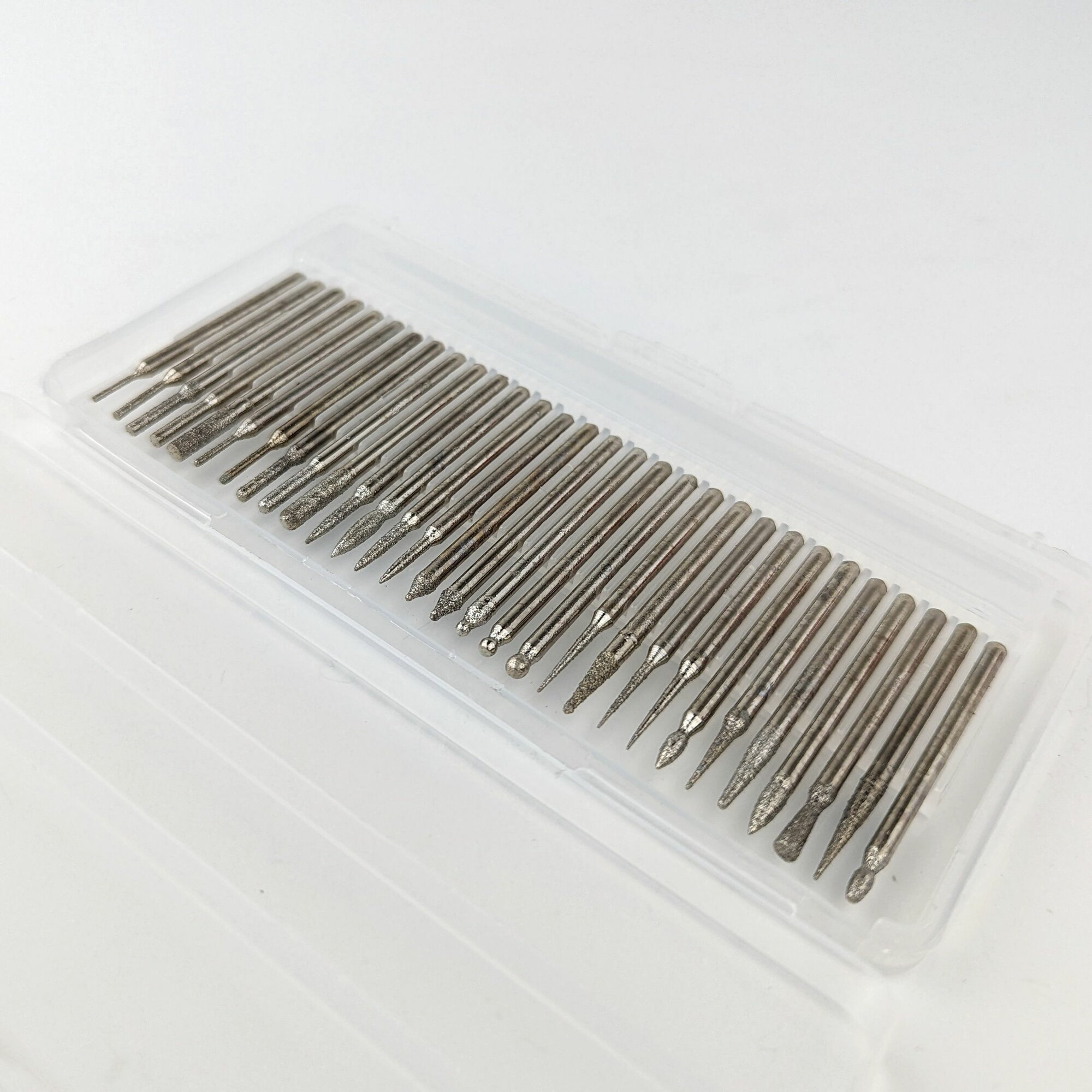 Купить Набор алмазных борфрез, шарошек по металлу, пластику, дереву для гравера и дрели, 30 штук, хвостовик 3 мм