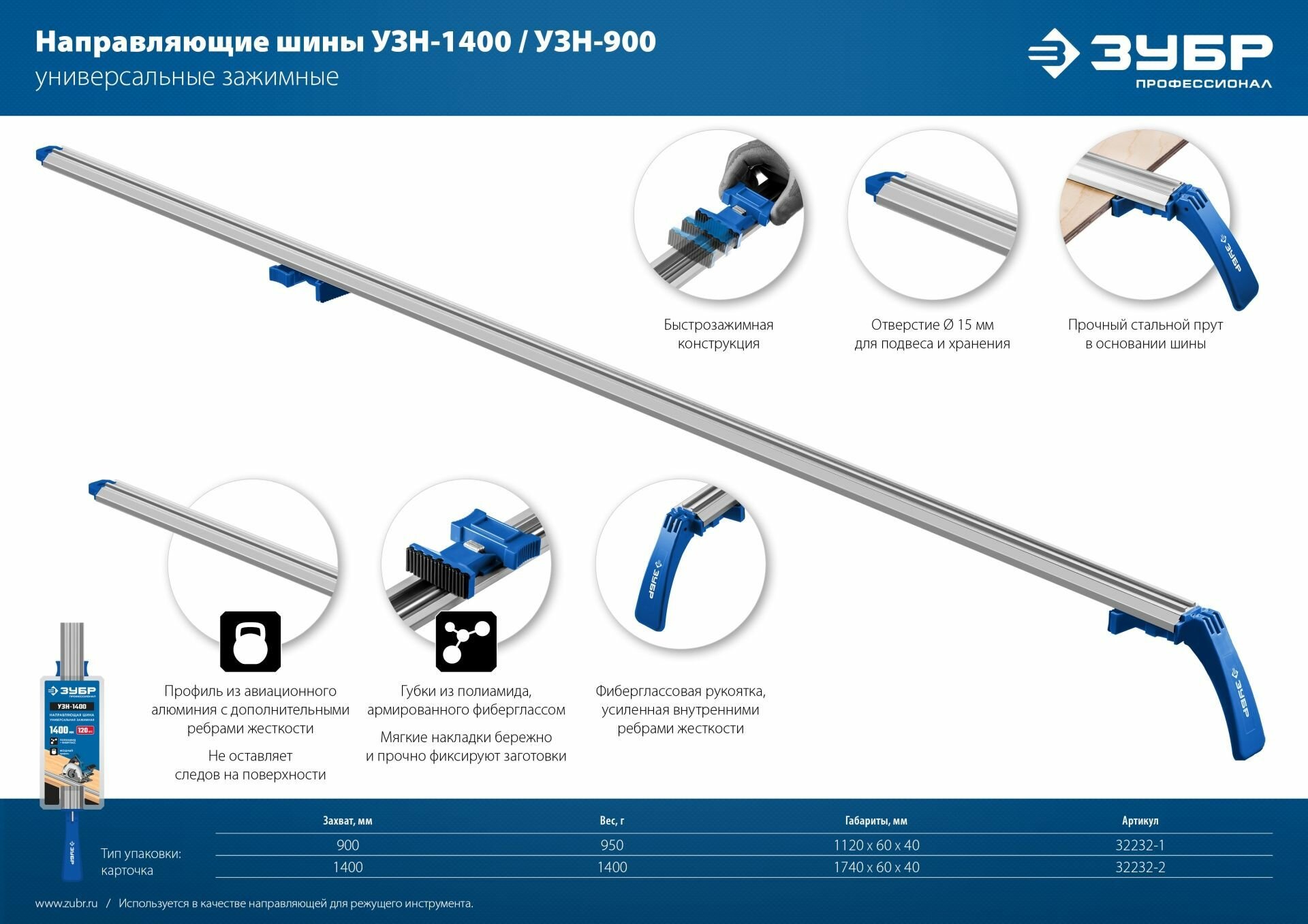 Направляющая шина ЗУБР УЗН-140 1400 мм