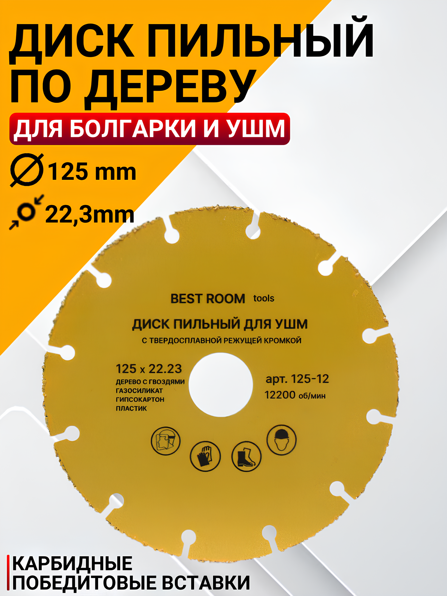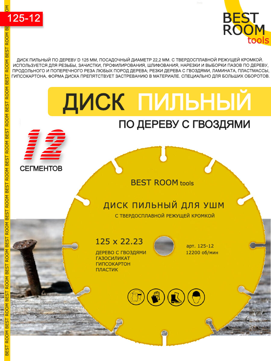 Круг отрезной, Диск пильный по дереву с гвоздями 125x22 / Насадка на УШМ Best Room интересное: