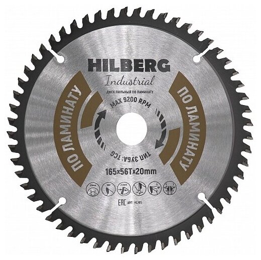 Диск пильный Hilberg Industrial Ламинат 165х20х56Т HL165