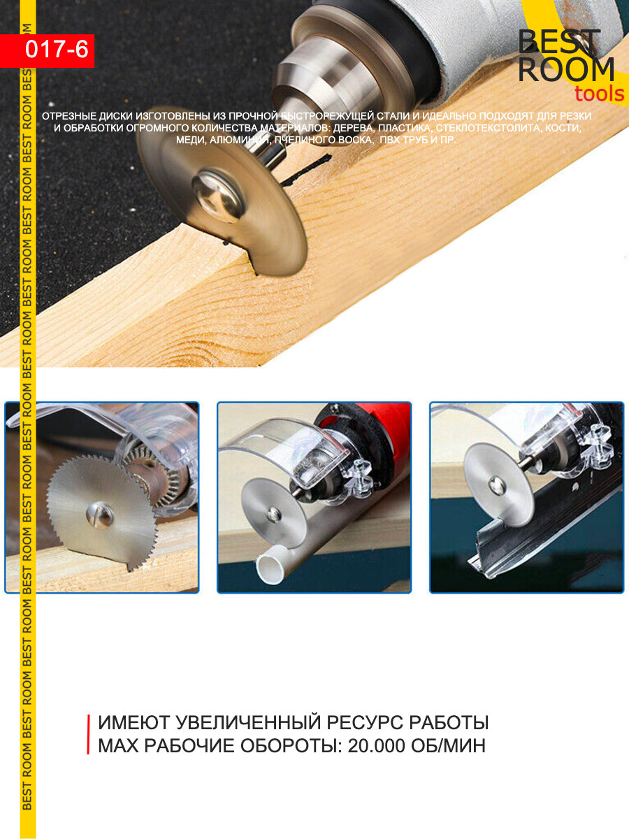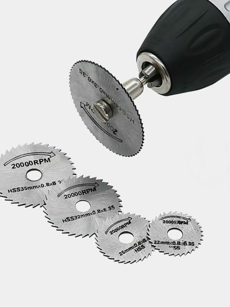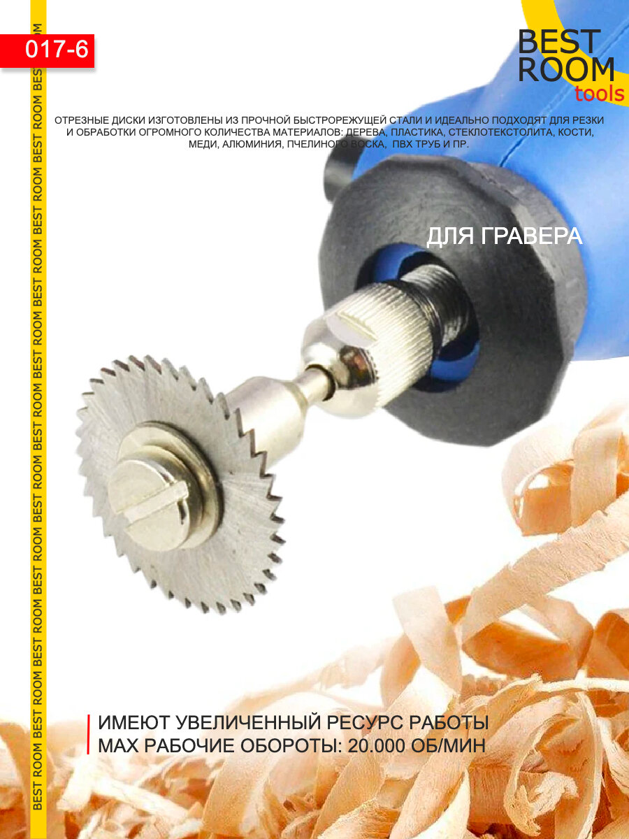 Набор кругов отрезных для граверов и бормашин по дереву, 6 насадок и адаптер