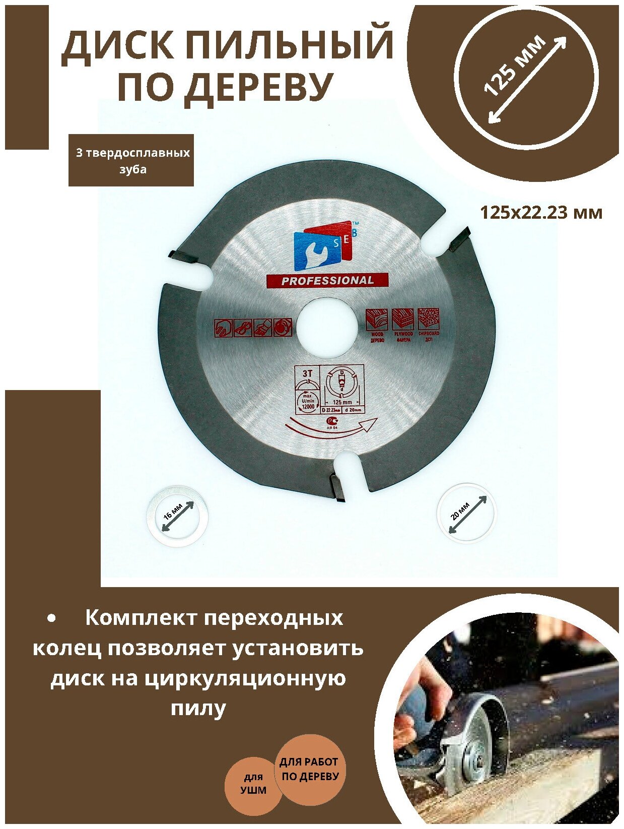 Диск пильный по дереву для УШМ 3 зубый 125х22.23 интересное: