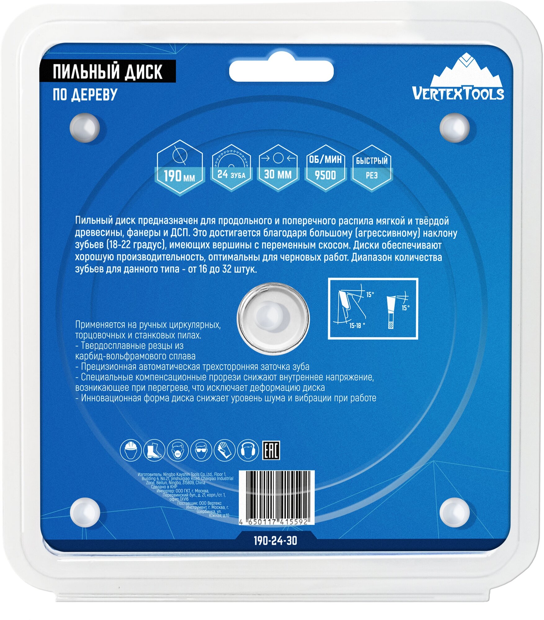 Пильный диск по дереву VertexTools 190Х30-20 мм 24 зуба интересное: