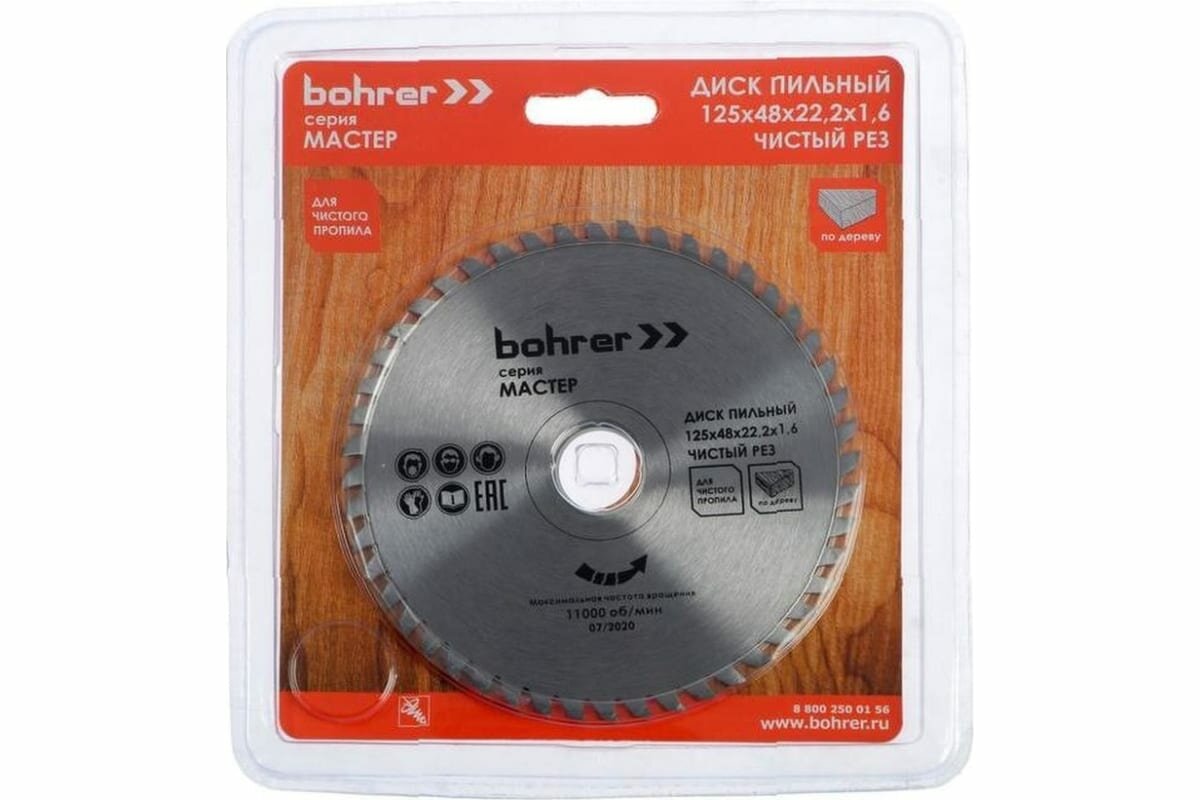 Диск для УШМ пильный по дереву 125х48х22,2х1,6 (чистый рез) "Bohrer" интересное: