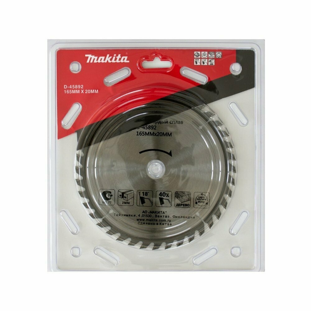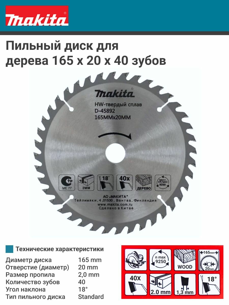 Пильный диск Makita для дерева, 165x20x2/1.3x40T, D-45892 интересное: