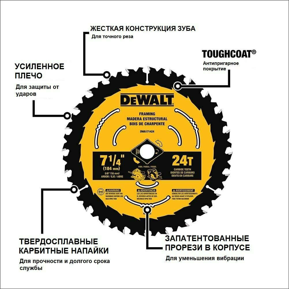 Диск пильный твердосплавный 184мм х 16 мм 24 зуба быстрый рез Dewalt DWA171424 без блистера интересное: