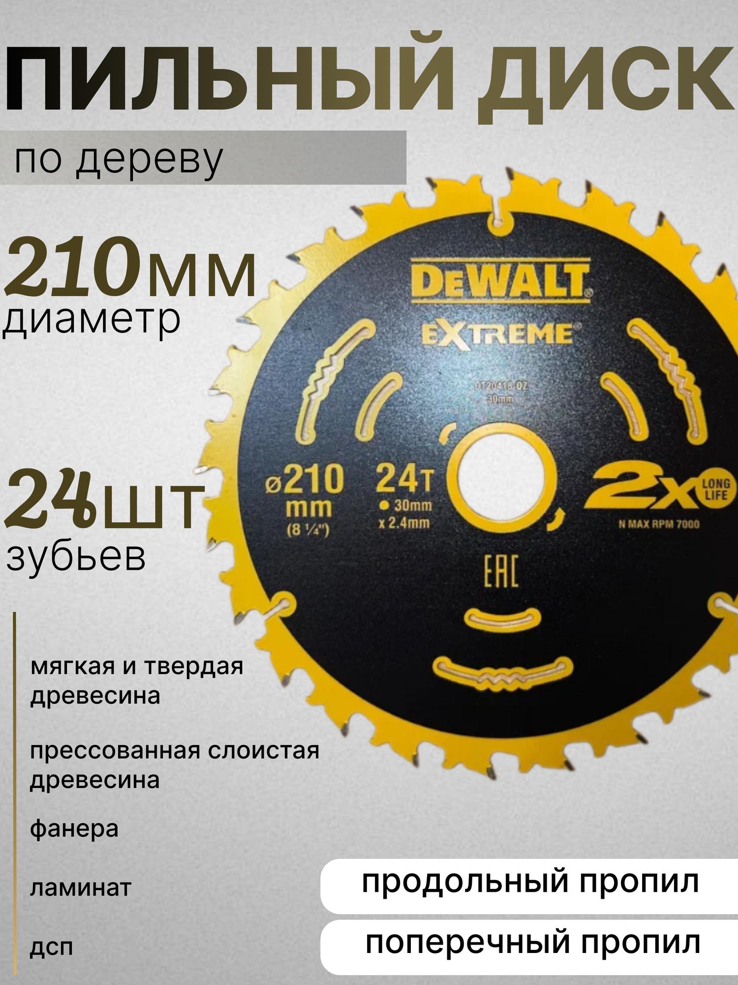 Диск пильный по дереву DeWALT Extreme 210*24*30 интересное: