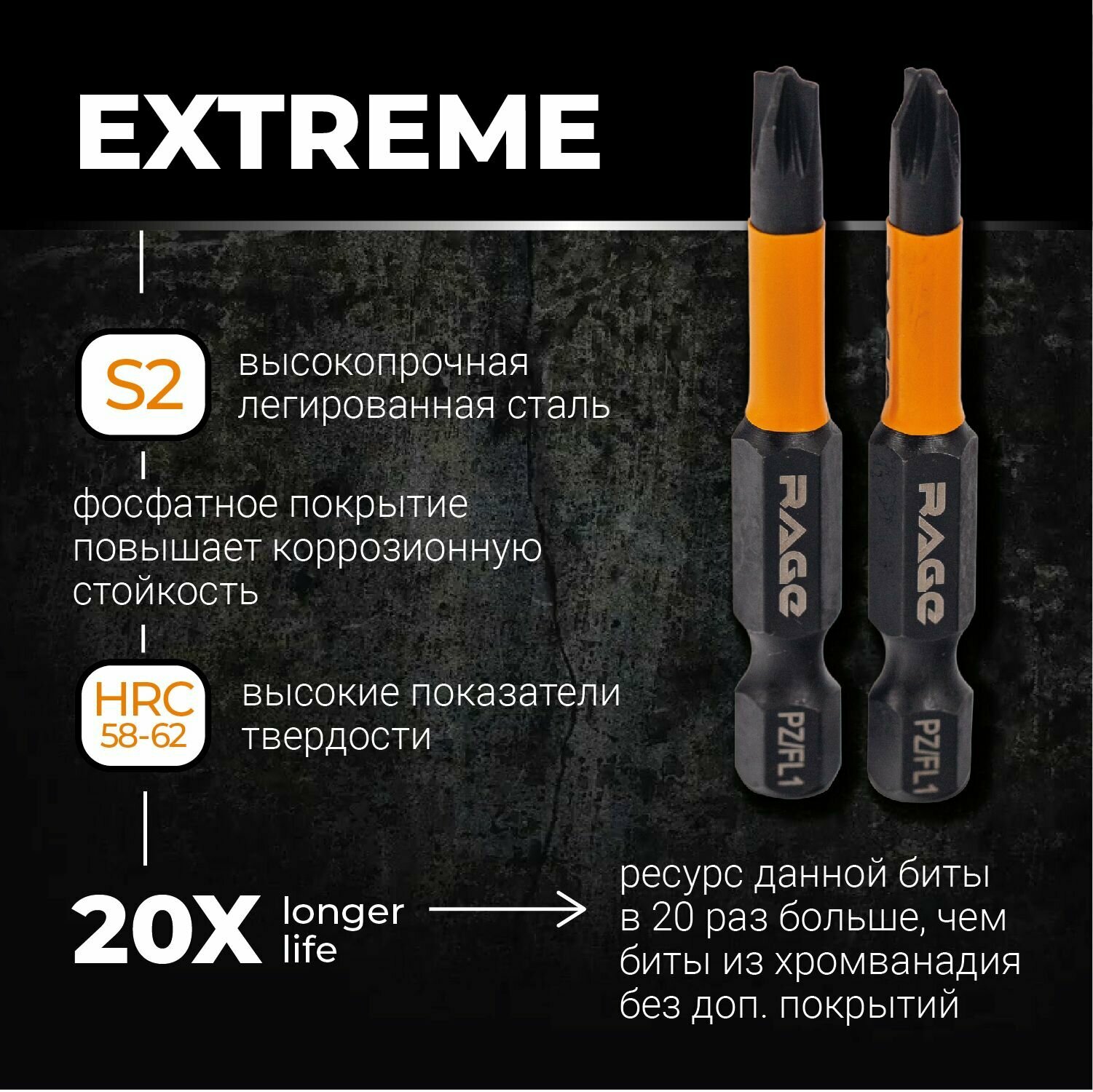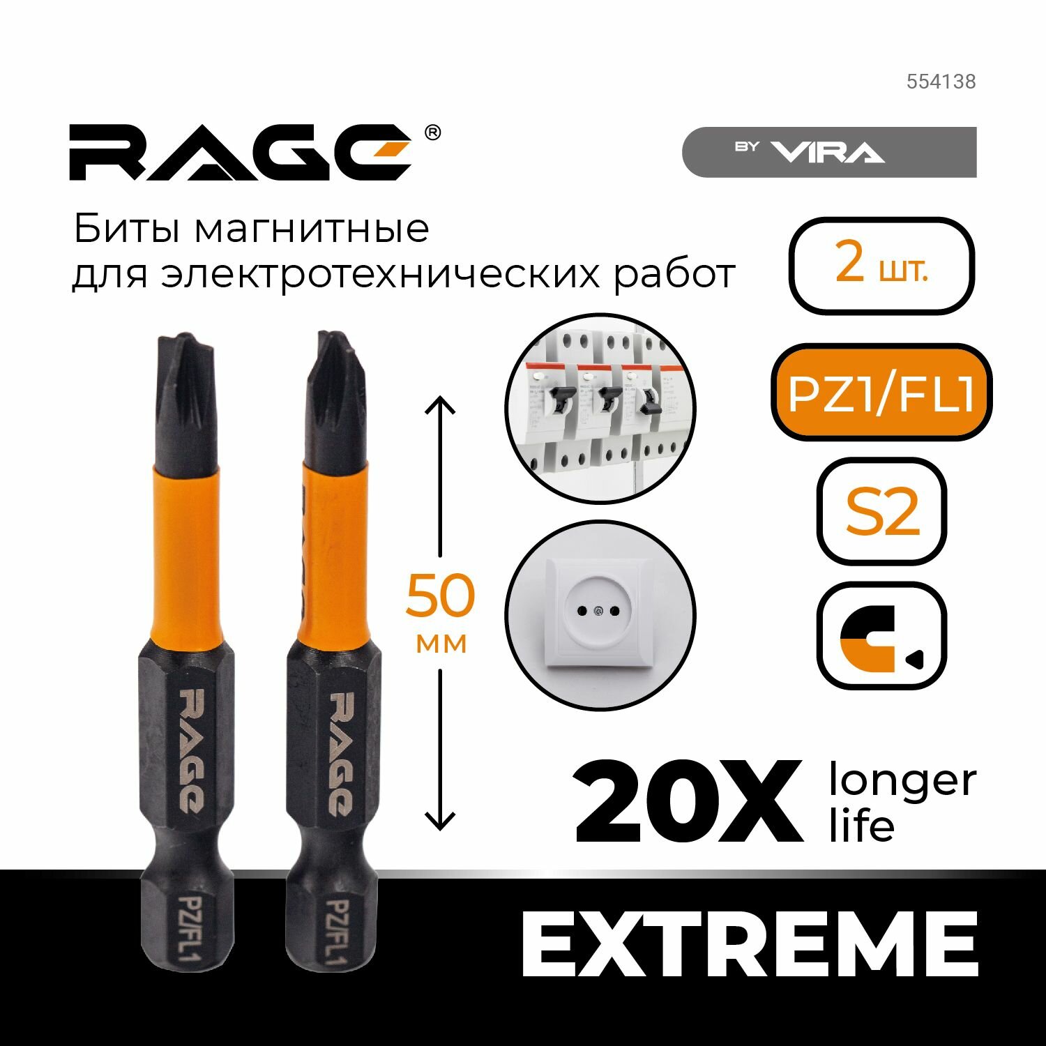 Биты магнитные S2 PZ/FL1 x 50 мм 2 шт RAGE by VIRA интересное: