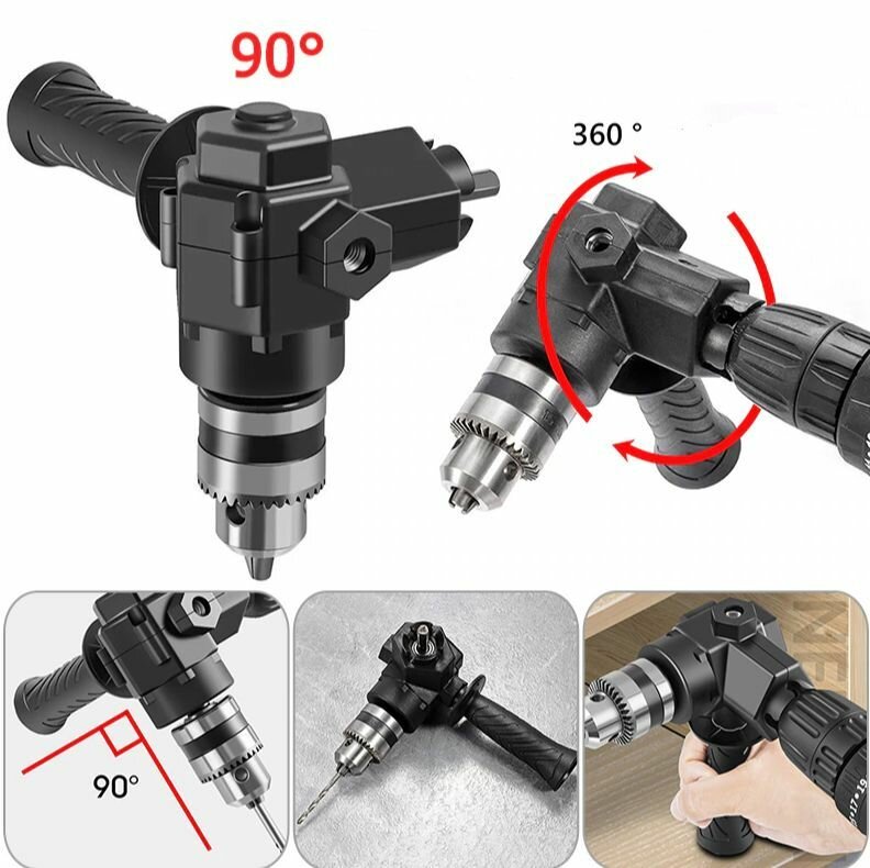Насадка угловая на дрель 90 градусов короткая, с рукоятью, на шуруповёрт, адаптер, под сверло/битку, патрон, инструмент интересное: