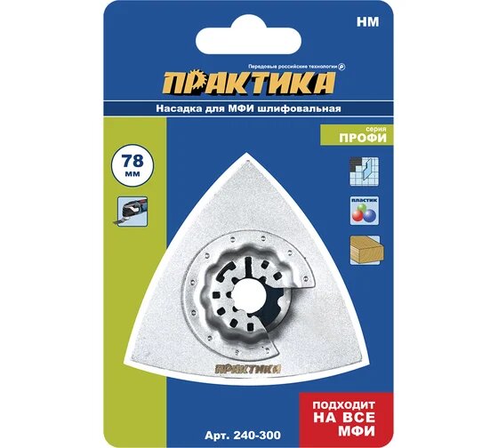 Насадка для МФИ / реноватора ПРАКТИКА шлифовальная дельтавидная, HM, по плитке и дереву, 78 мм (240-300) интересное: