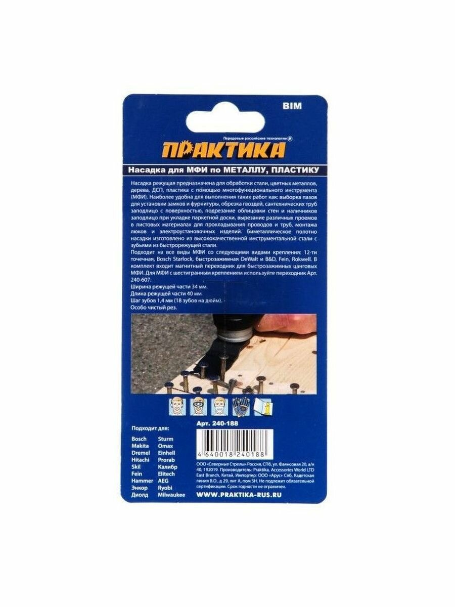Насадка для МФИ / реноватора ПРАКТИКА режущая пазовая прямая, BiM, по металлу и дереву, 34 мм, мелкий з (240-188) интересное: