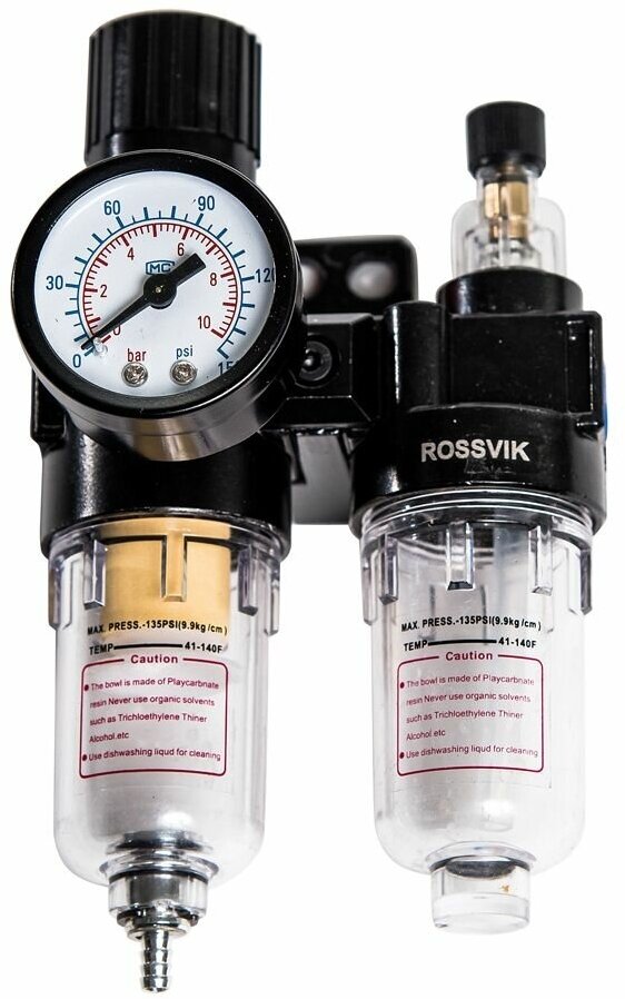 Купить Фильтр регулятор ROSSVIK с манометром + лубрикатор FR+L, 1/4"