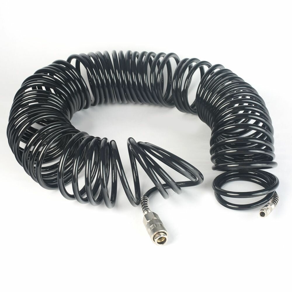 Шланг спиральный POWER TECHNIC 7,5м, PU 5.5х8мм, с быстросъёмными разъемами 1/4" PU08-7,5m