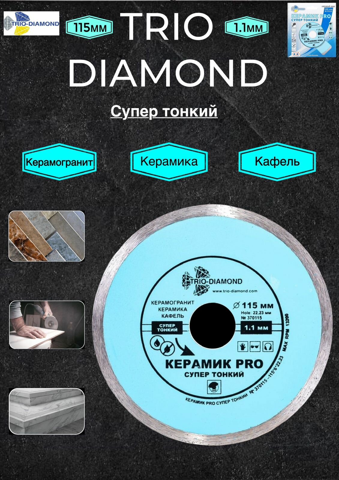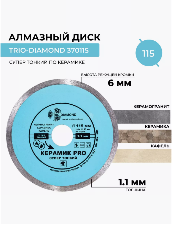 Купить Диск алмазный отрезной Trio Diamond Керамик PRO супер тонкий 370115, 115 мм