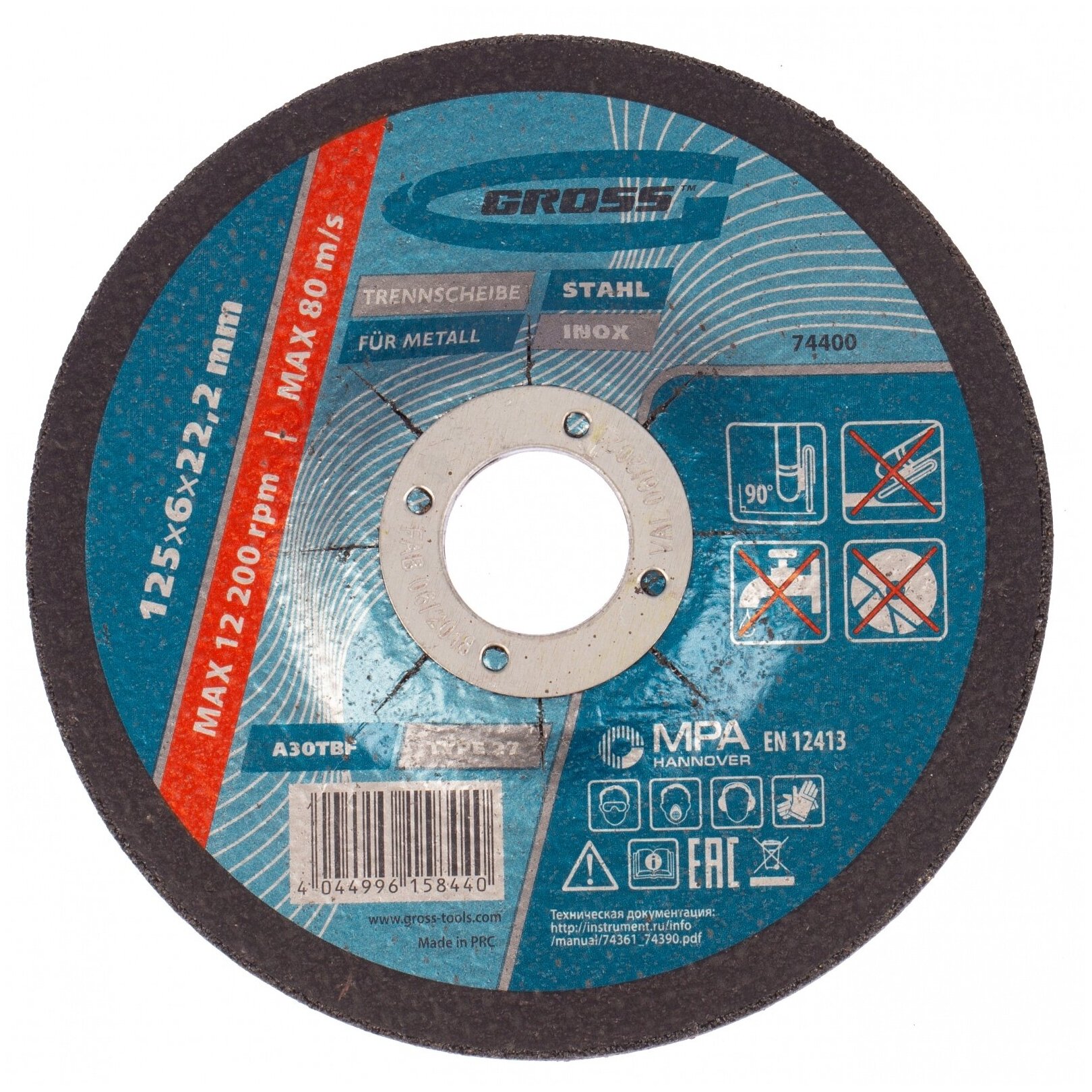 Круг шлифовальный по металлу, 125 х 6.0 х 22.2 мм GROSS 74400 интересное: