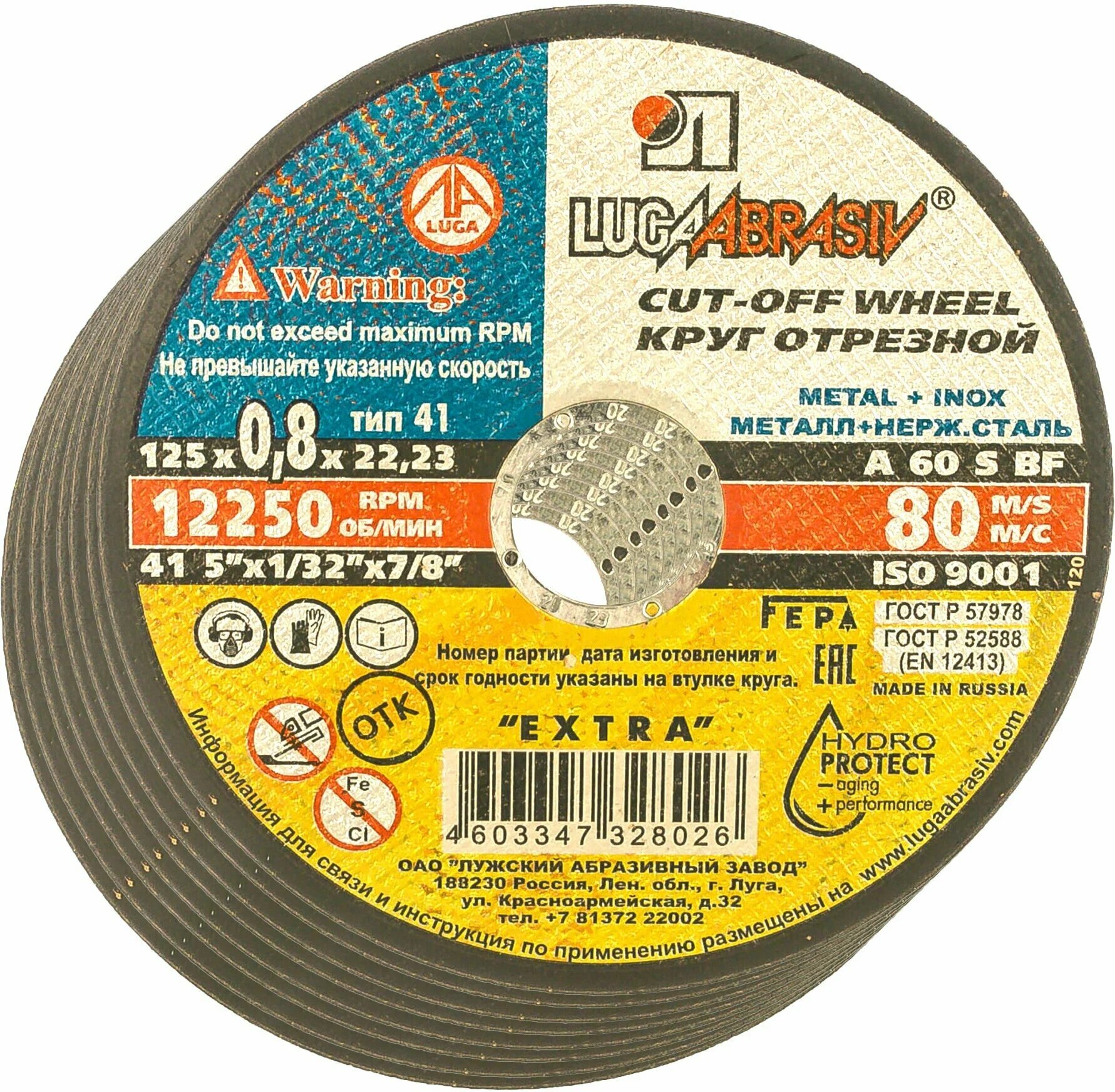 LUGAABRASIV Круг отрезной по металлу "Луга" A 30 S BF 80 (14А БУ), 230 х 2.5 х 22 мм