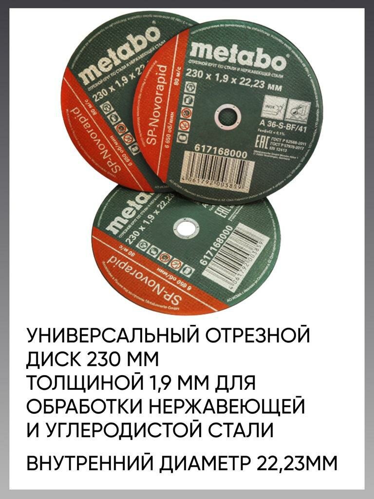 Круг отрезной по металлу 230*1.9 Metabo, диск отрезной 230 интересное: