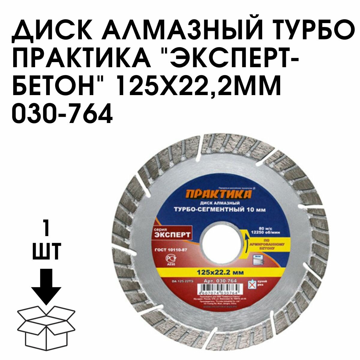 Диск алмазный турбосегментный ПРАКТИКА "Эксперт-бетон" 150 х 22 мм, сегмент 10мм (1 шт.) коробка (150х22мм, 10мм, коробка)