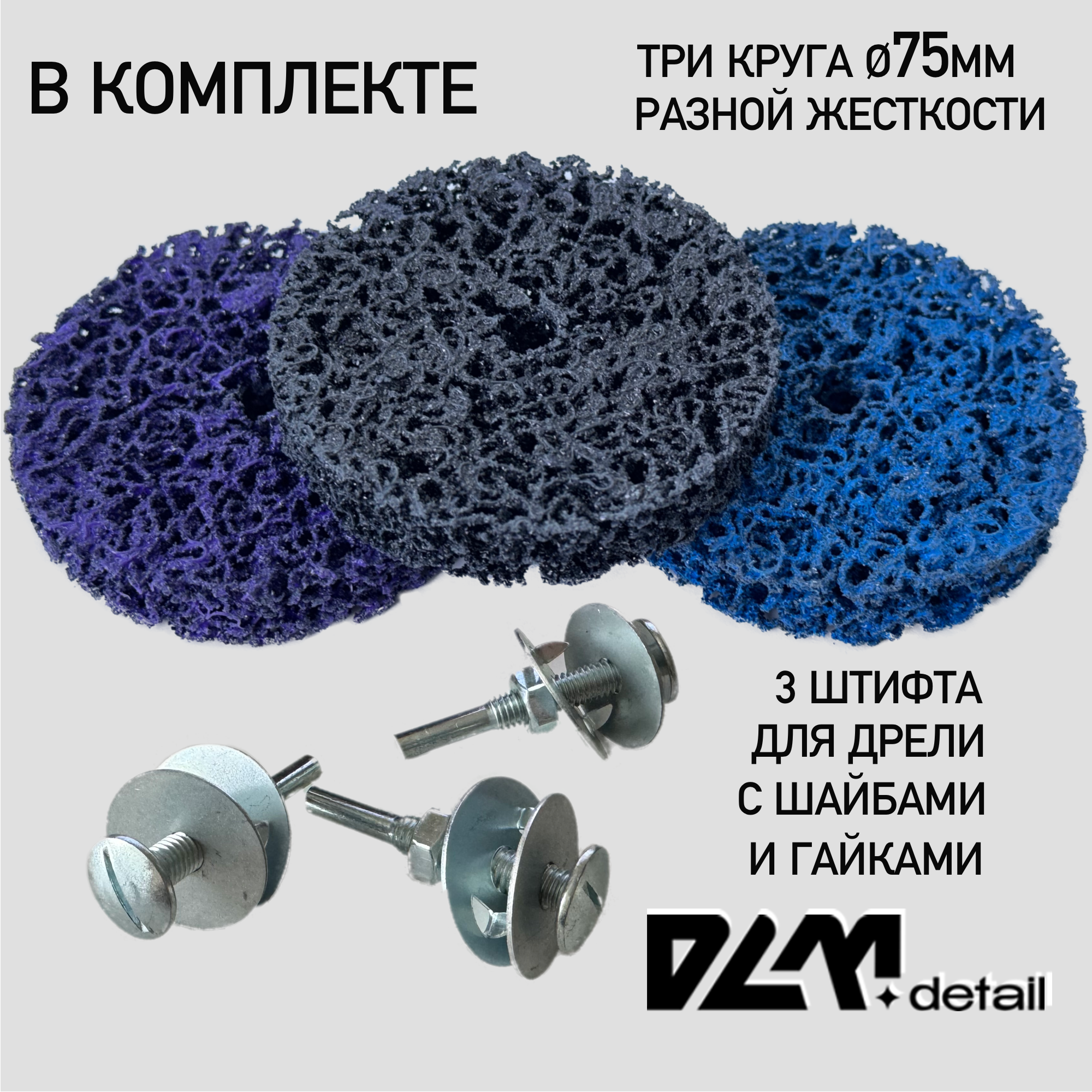 | Комплектация | Диск коралловый 75 мм для дрели-3 шт;штифт с резьбой,гайкой,шайбами-3 шт |
