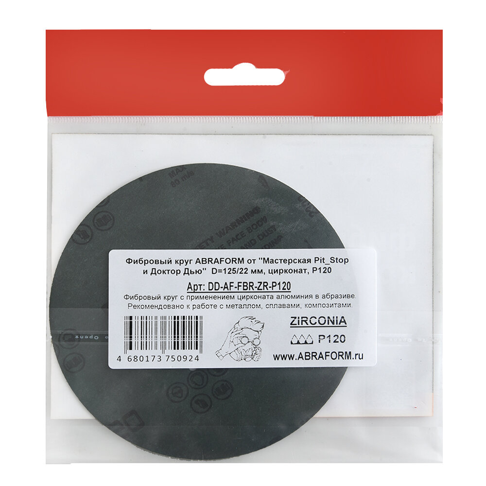 Фибровый круг от "Мастерская Pit_Stop и Доктор Дью" 125х22 мм, цирконат, P24 ABRAFORM DD-AF-FBR-ZR-P24