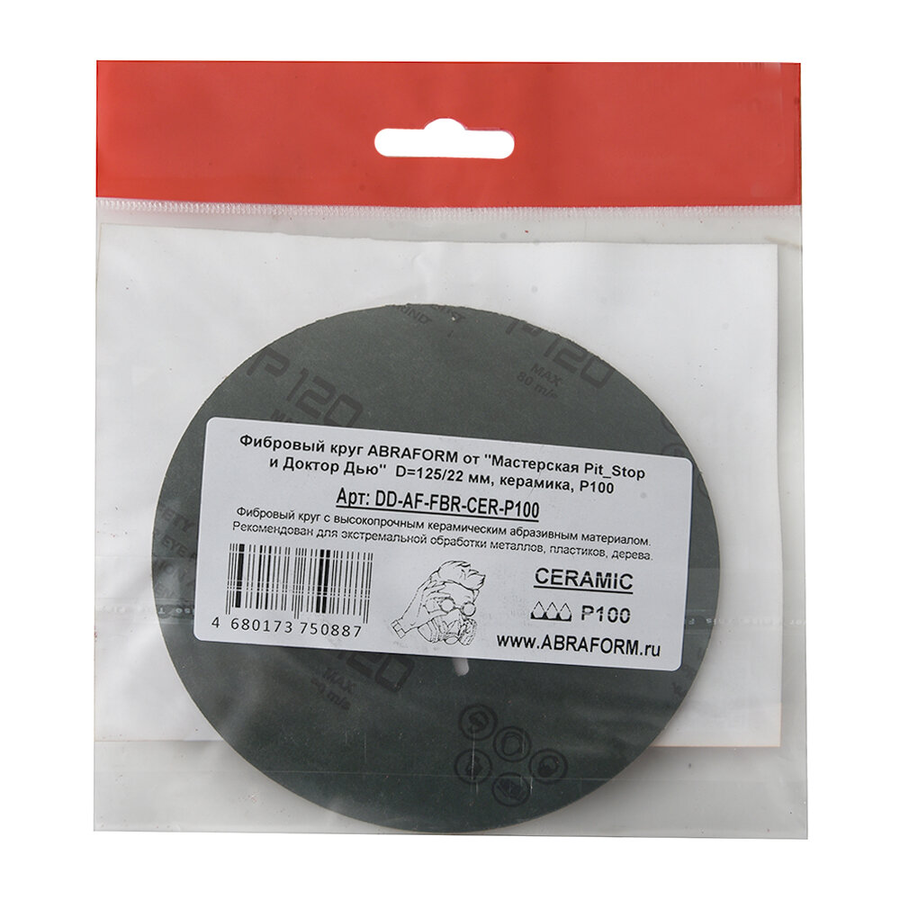 Купить Фибровый круг от "Мастерская Pit_Stop и Доктор Дью" 125х22 мм, керамика, P100 ABRAFORM DD-AF-FBR-CER-P100