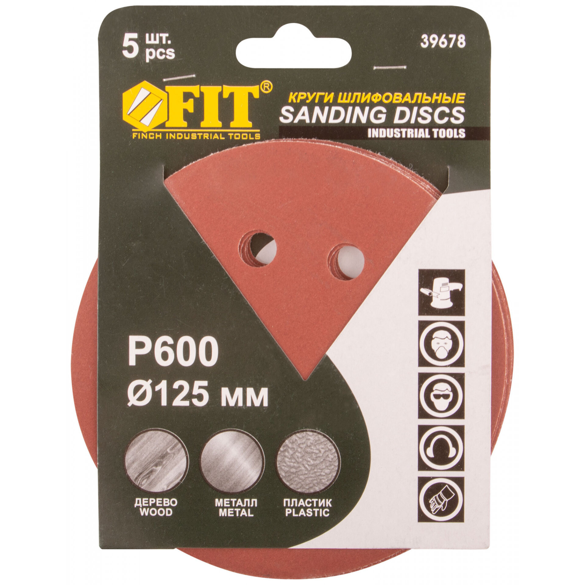 FIT TOOLS 39663 Круги шлифовальные, набор 5 шт. (d125) P60