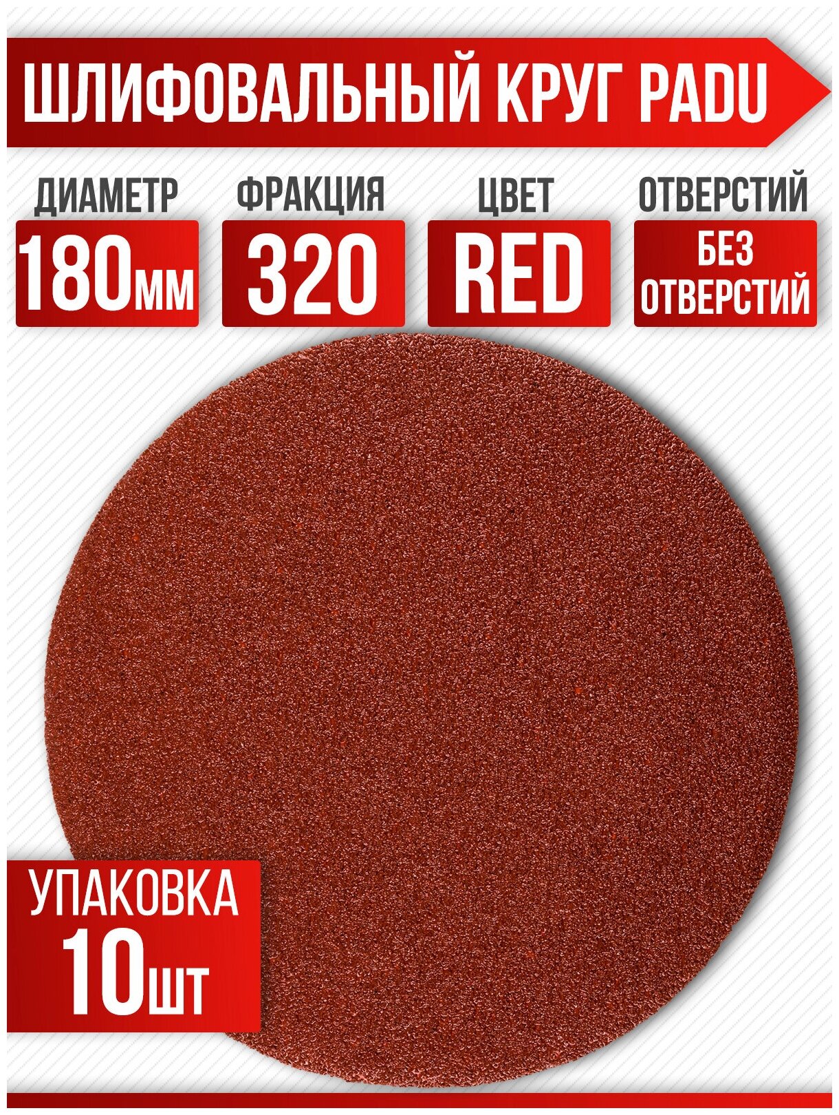 Круг шлифовальный RED D 180 мм P 180 на липучке 10 шт без отверстий