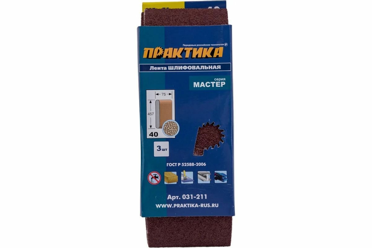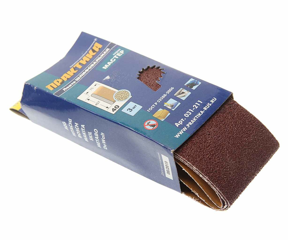 | Комплектация | Лента шлифовальная ПРАКТИКА 75 х 457 мм P40 (3шт.) |