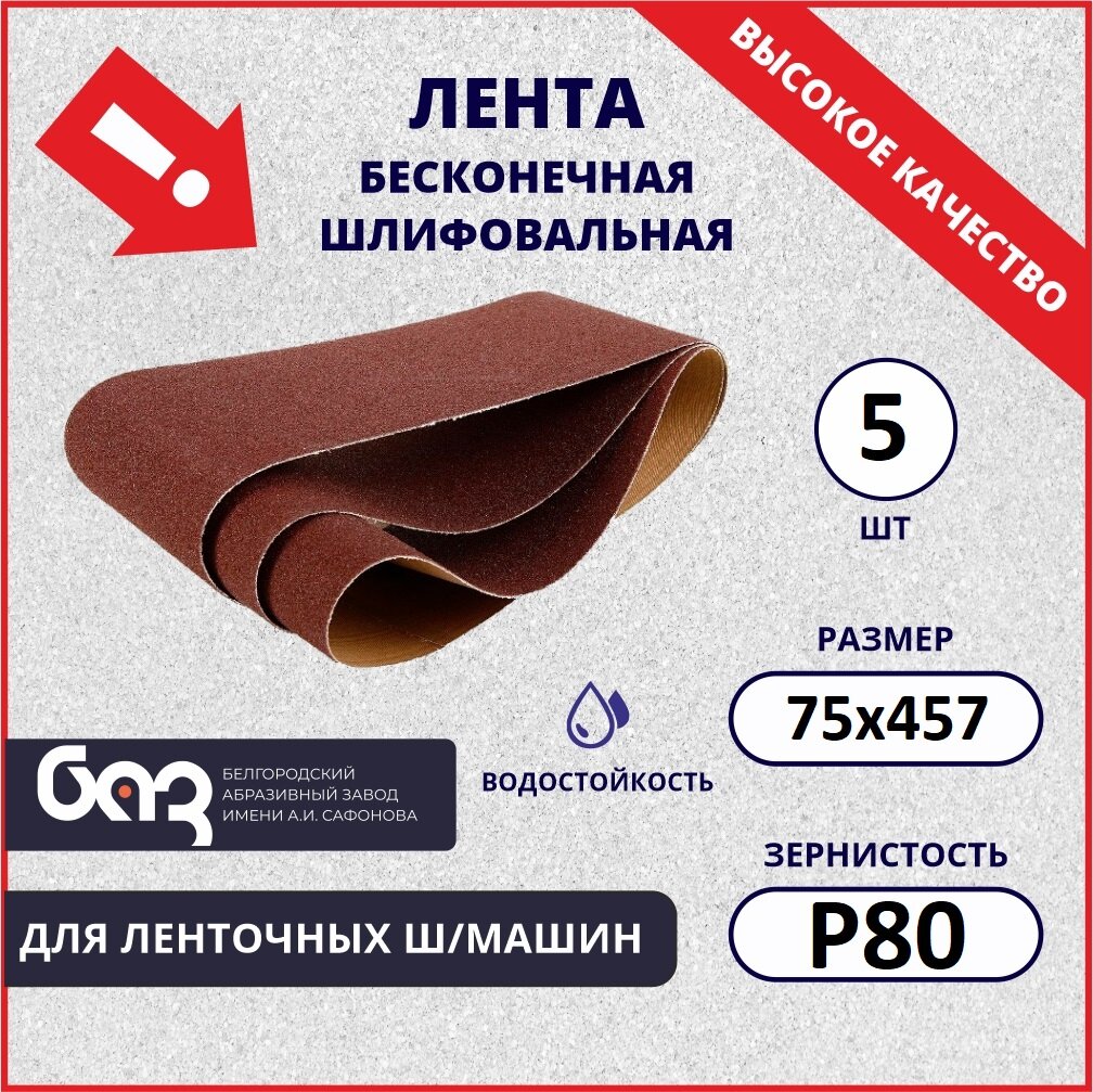 Купить Лента бесконечная шлифовальная БАЗ 75 мм 457 мм P80, 5шт
