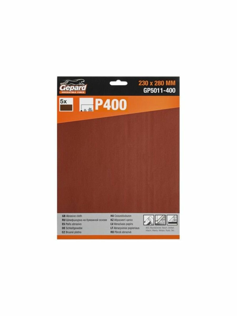Шлифлист GEPARD (GP5011-400) 230х280 мм Р400 5 штук