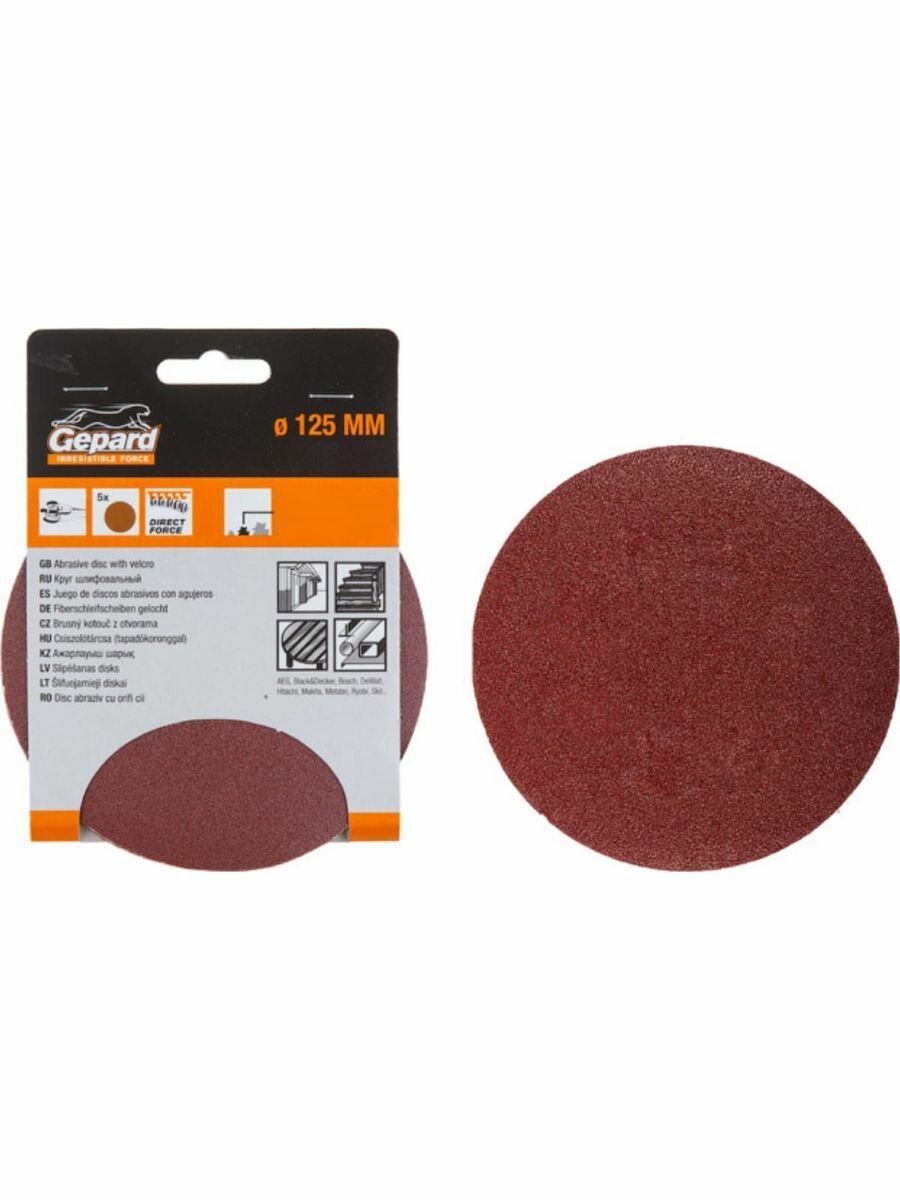 Шлифлист GEPARD (GP5014-120) круглый самосцепляющийся 125 мм Р120 5 штук