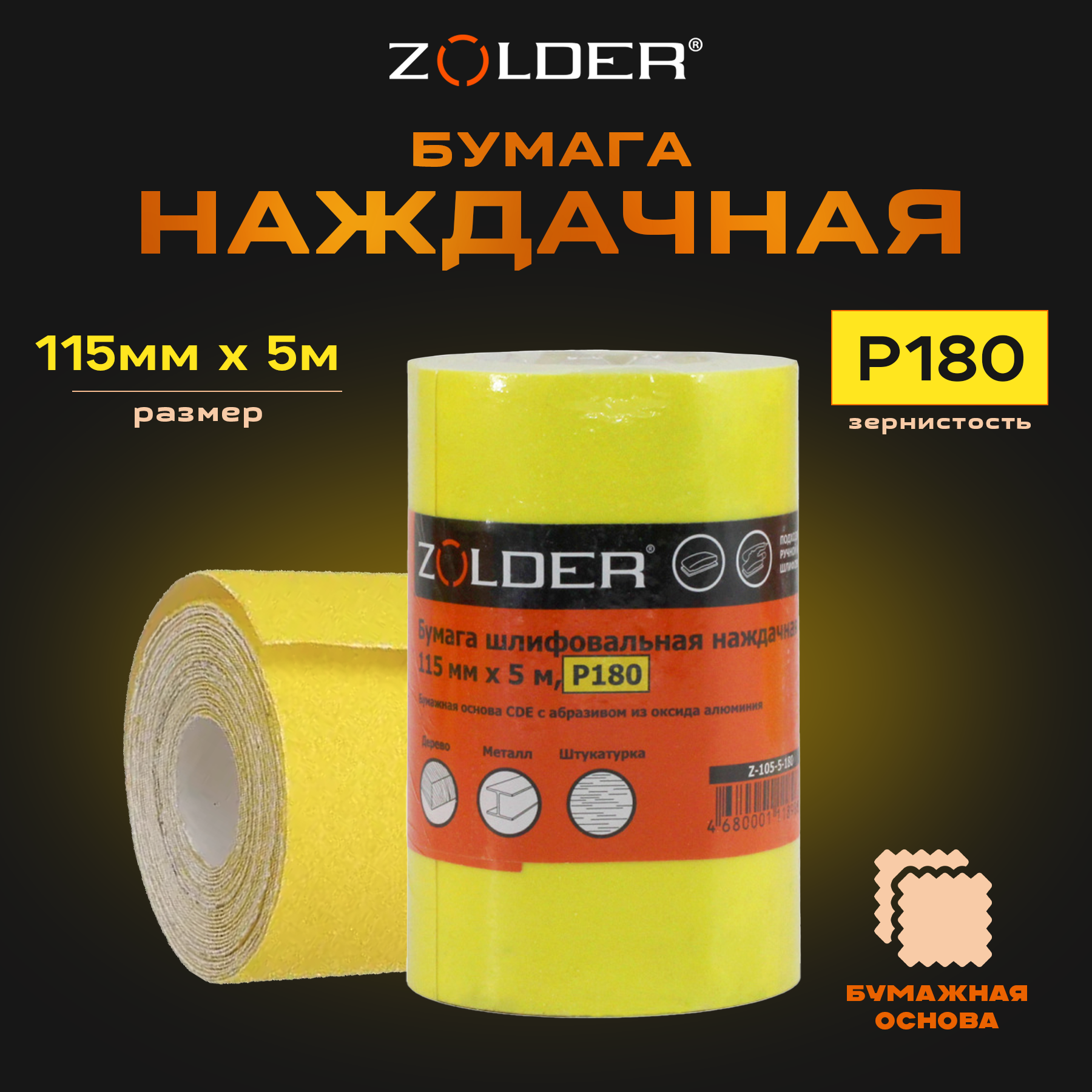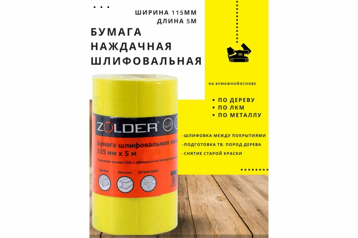 Бумага шлифовальная, наждачная, 115 мм х 5 м, Р180, Zolder интересное: