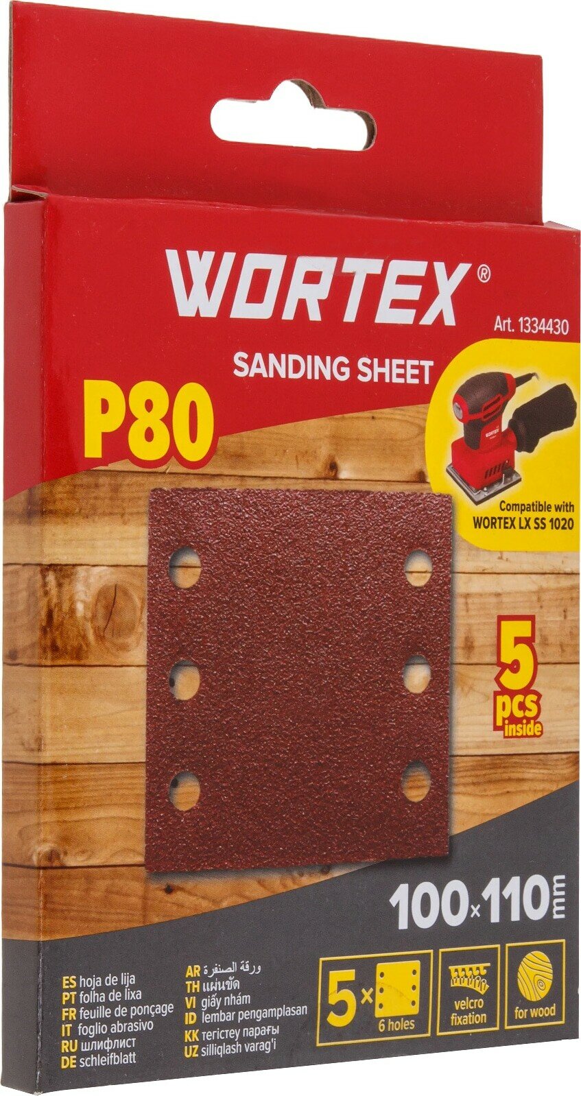 Купить Шлифлист 100х110мм Р80 д/дерева самосцепл. 6 отв. 5шт WORTEX (1334430)