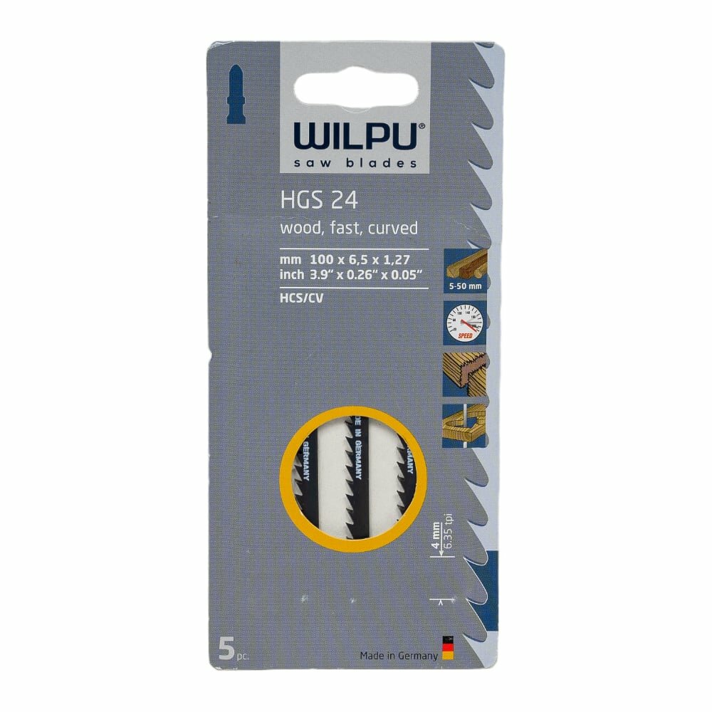Пилка для лобзика WILPU HGS 24 Арт.0237000005 Тип - T для дерева до 50 мм (быстрый фигурный рез) уп. 5 шт