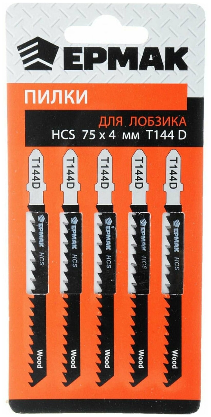Пилки для эл. лобзика Ермак (HCS EU 75х4мм.) T-144D (дер, быст. рез.), 5шт.