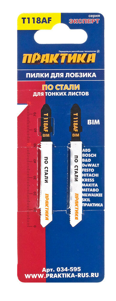 Пилки для лобзика по стали ПРАКТИКА тип T118AF 76 х 50 мм, чистый рез, BIM (2шт.) (034-595) интересное: