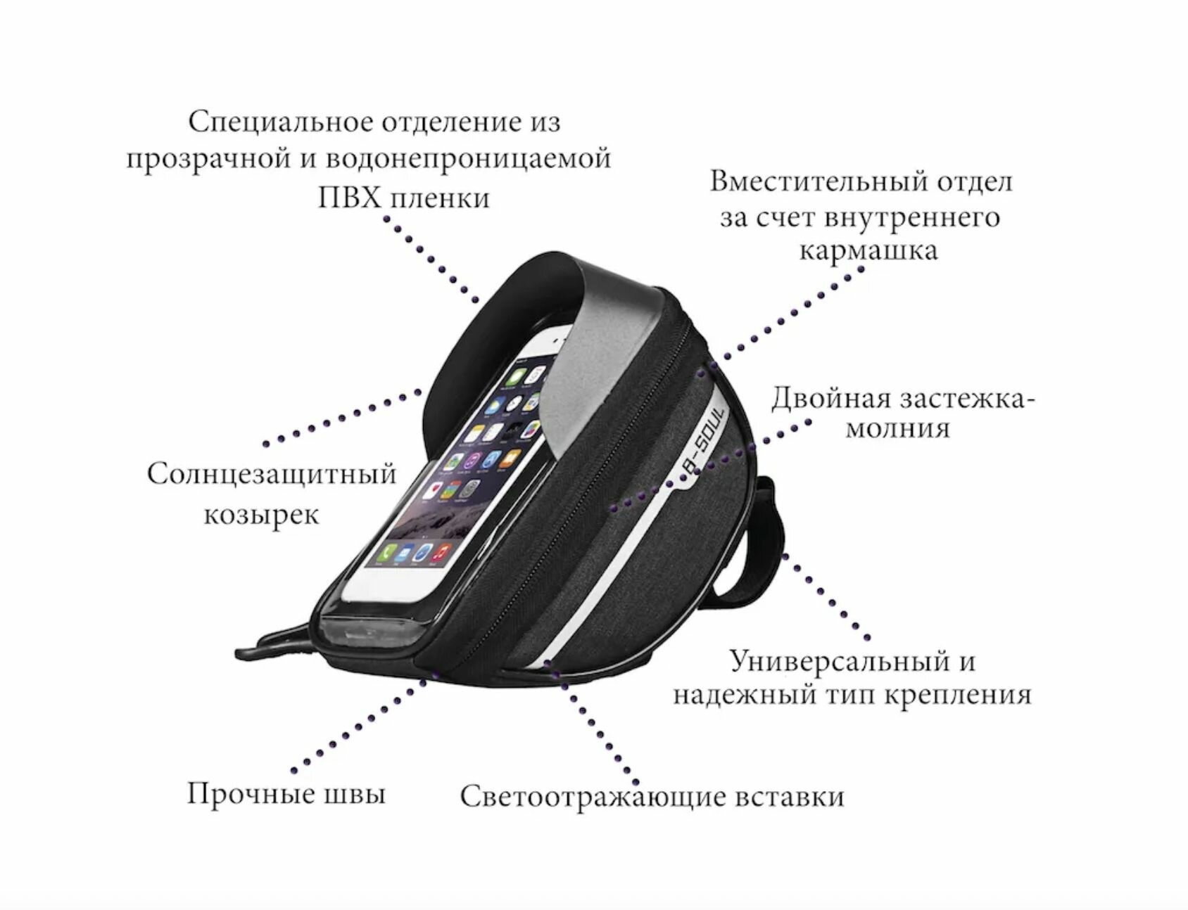 Велосипедная сумка на руль. Держатель для телефона. Черная интересное: