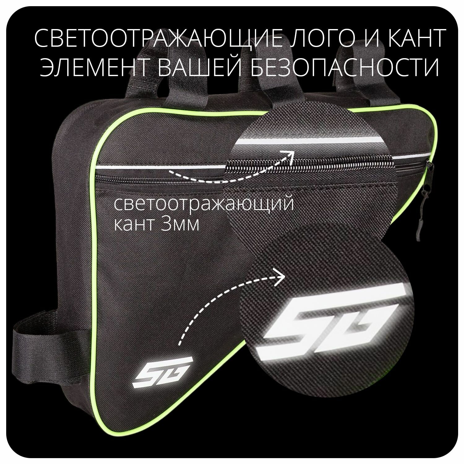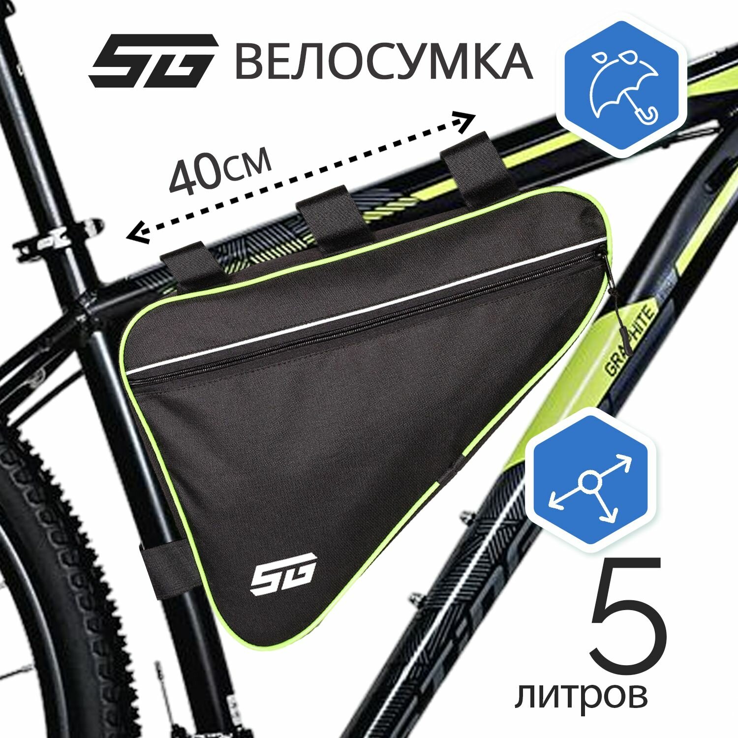 Велосумка под раму STG, модель FB-001, размер 40х27х6 см, черный/зеленый интересное:
