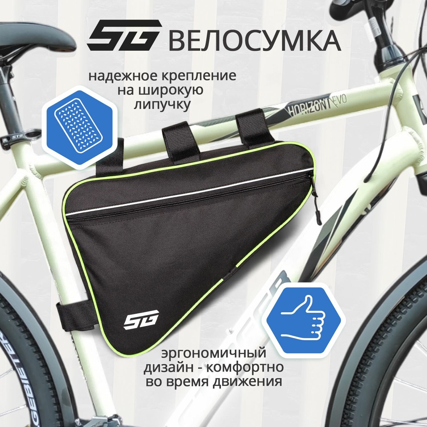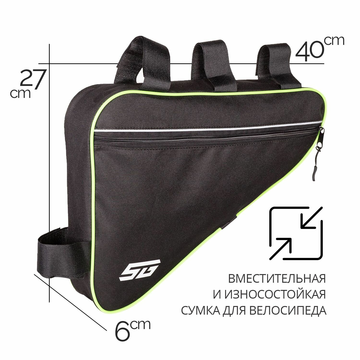 Купить Велосумка под раму STG, модель FB-001, размер 40х27х6 см, черный/зеленый